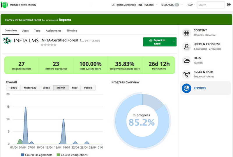 INFTA sets the standards for and organizes the training of INFTA-Certified Forest Therapy Guides nationally and internationally. This is done in close collaboration with members of the INFTA Advisory Board, established research institutes and organizations as part of a dynamic international network. Training of Forest Therapy Guides is based on the International Core Curriculum for Forest Therapy (ICCFT) designed by INFTA in 2017. In the process, the ICCFT was evaluated and validated by over 120 international experts from 20 countries. INFTA-Certified Forest Therapy Guide training aims to provide learners with the knowledge, competencies and confidence to facilitate high-quality Forest Therapy sessions for a very large spectrum of clients and participants. This training offers the opportunity to develop professional and personal leadership, social and interpersonal capacity, and the skills and technical knowledge to contribute to the growing field of research in the area of Forest Therapy as a Public health practice. You can start your training to become an INFTA-Certified Forest Therapy Guide any time – anywhere in the world. This is possible due to the multilingual, innovative and professional INFTA Learning Management System – available 24/7, all year round.